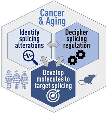 Building on our strengths in RNA and cancer biology, our lab research currently focuses on: 1) Targeting the regulation of splicing factors in cancer; 2) Defining aging-associated splicing as an oncogenic factor in breast; 3) Developing approaches to functionally characterize spliced isoforms at scale.